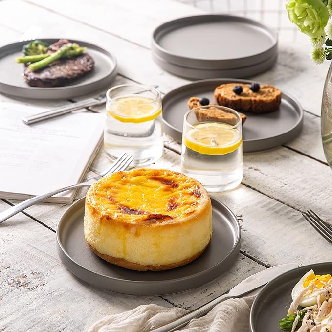 AmorArc Ceramic Plates Set of 6, Matte Glaze 8.0 Inch Dishes Set for Kitchen, Dessert,Salad,Appetizer, Small Dinner Plates, Microwave & Dishwasher Safe, Scratch Resistant, Matte Grey