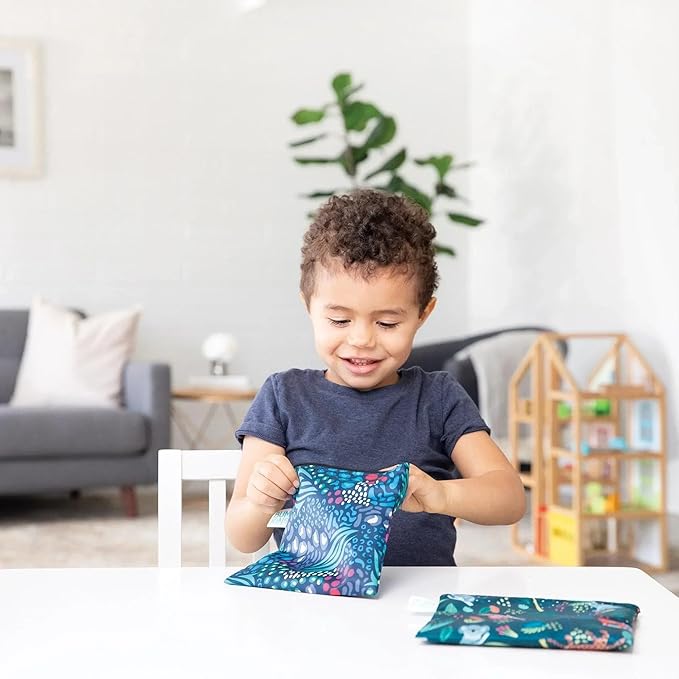 Bumkins Reusable Sandwich and Snack Bags, for Kids School Lunch and for Adults Portion, Washable Fabric, Waterproof Cloth Zip Bag, Travel Pouch, Food-Safe Storage, Large 2-pk Jungle