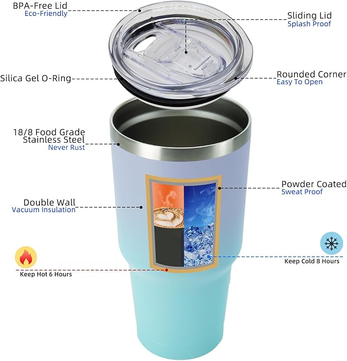 - With 30 oz capacity, the jug is enough for both daily use or travelling, fits car cup holders, designed with non-sweat design, the outer layer is coated with powder which can keep your tumbler dry and neat when holding, take the travel tumbler together when you go outdoor activities is a nice choice