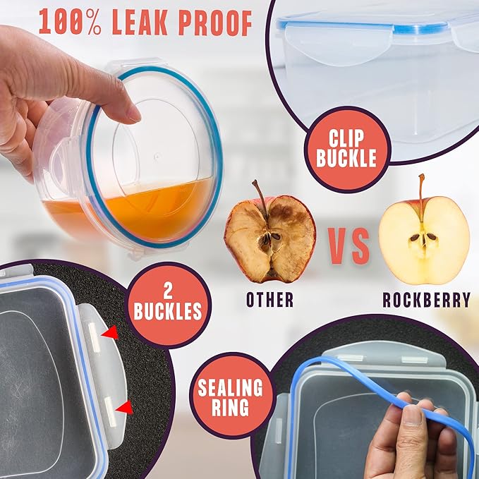 RockBerry 32 Pcs Large Plastic Food storage containers-85 oz to Sauces Box Stackable Kitchen storage bowls sets-BPA Free Leak proof with lids airtight-Microwave freezer safe lunch boxes