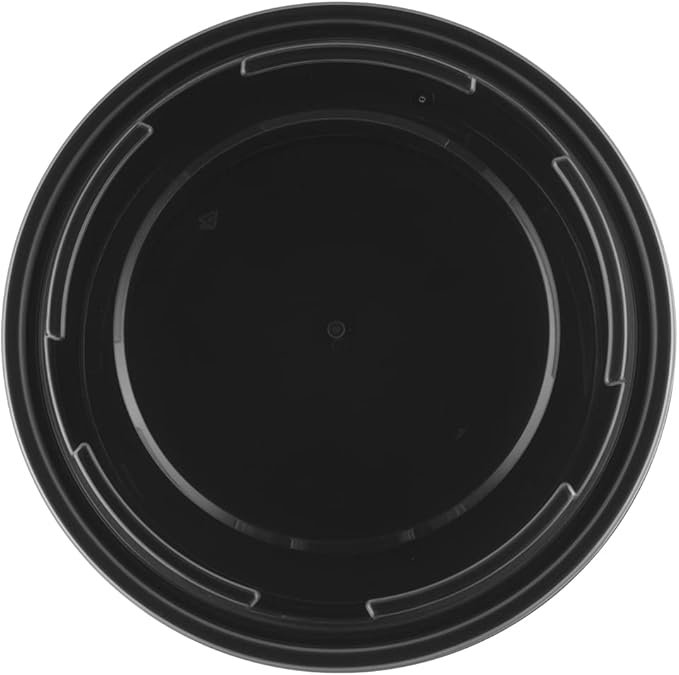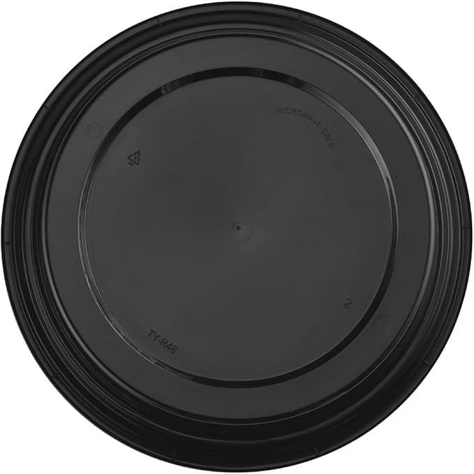 - SPECIFICATIONS: These 48 oz containers use food grade bpa free plastic for the body and lids. Our material is oil and water resistant with no leeching or unsightly stains. These circular bowls come in a 150 pack to give you a better deal for bulk meal prepping and Reusable container to-go service.
