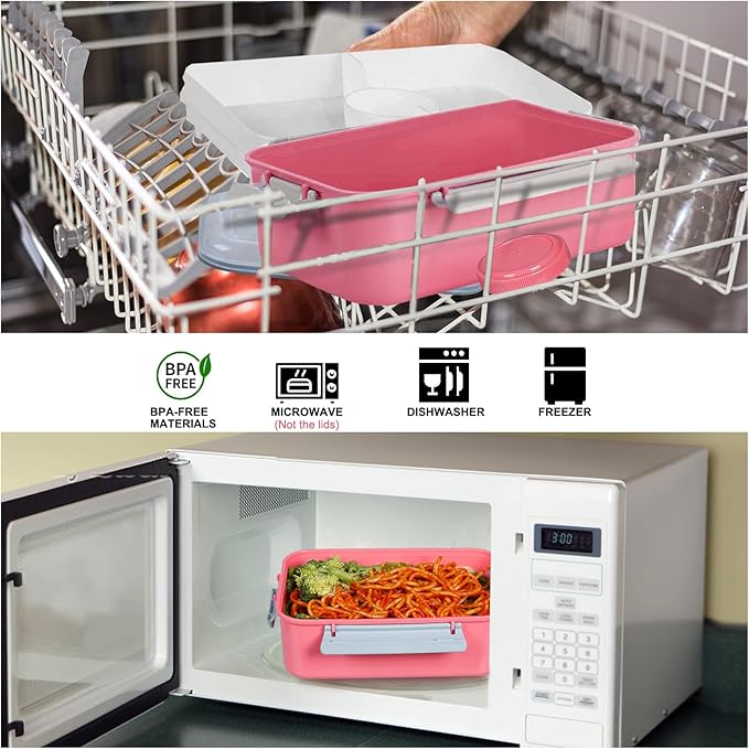 - Healthy and Safe Material: The bento lunch box is made of food-grade PP, non-toxic, Phthalate free, BPA free, great lunch boxes containers for adult and kids with large capacity 47oz, ideal meal prep containers for outdoor, camping, work, office and school use.