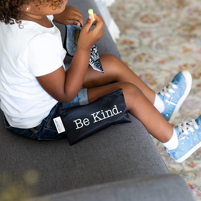 Bumkins Reusable Snack Bags, for Kids School Lunch and for Adults Portion, Washable Fabric, Waterproof Cloth Zip Bag, Supplies Travel Pouch, Food-Safe Storage, 2-pk Born This Way Be Kind