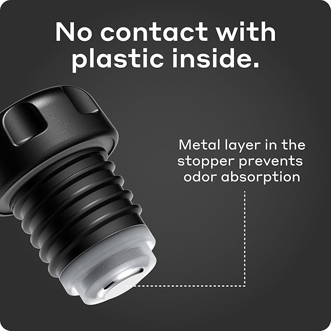 - SAFETY FIRST: 18/8 high grade rust-free stainless steel metal bottle. BPA-free, food-grade steel, food-grade plastic and silicone. Stopper has extra metal layer to prevent odor absorption. Your drink will never touch any plastic