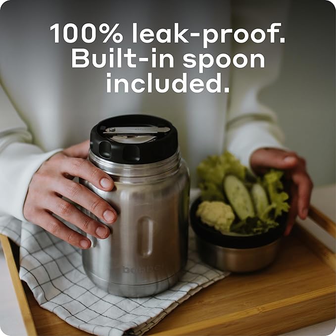 - MULTIFUNCTIONAL: The external cap doubles as a serving bowl, and a stainless steel folding spoon is included, making it easy to enjoy hot meals on the go