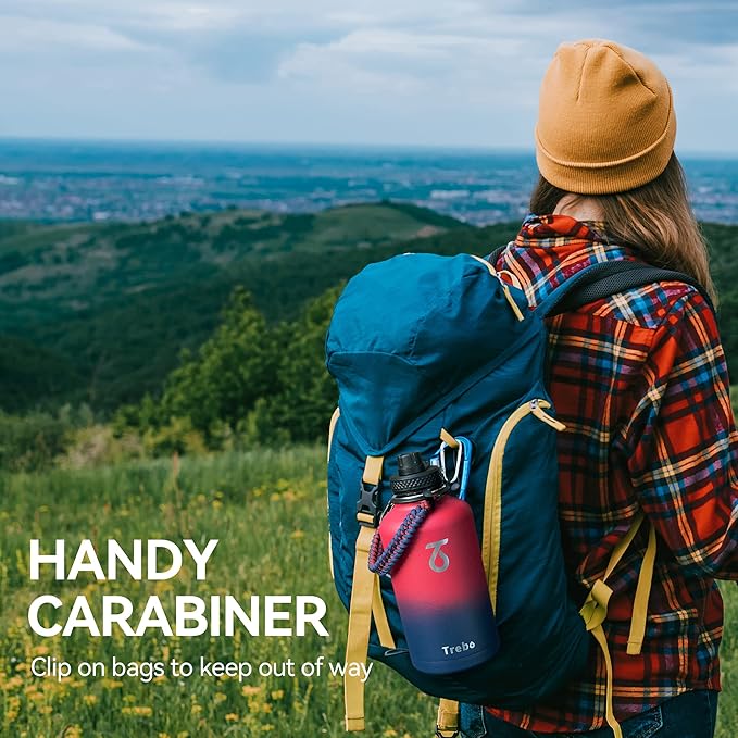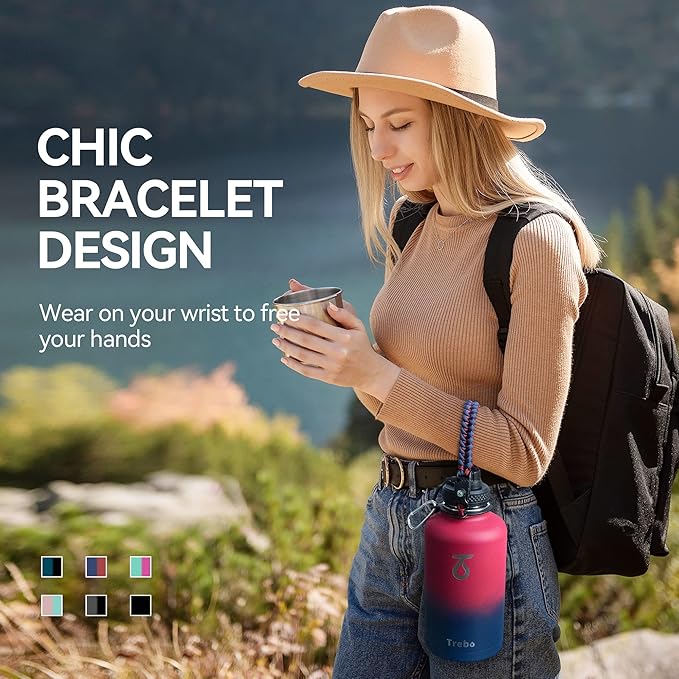 - A Full Pack:64 oz insulated water bottle Included with 3 lids, 1 survival paracord, 2 straws, 1 straw brush, and carrying pouch,1 shoulder strap. this Trebo insulated bottle is fully accessorized to handle any tricky situations,easy to carry clean. Our friendly customer care are always happy to help