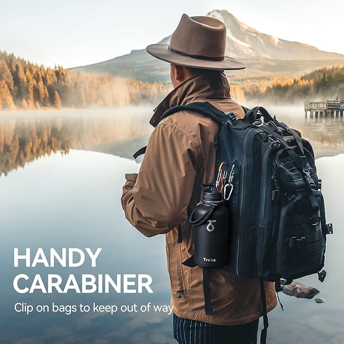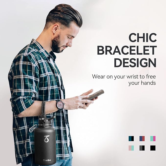 - A Full Pack:64 oz insulated water bottle Included with 3 lids, 1 survival paracord, 2 straws, 1 straw brush, and carrying pouch,1 shoulder strap. this Trebo insulated bottle is fully accessorized to handle any tricky situations,easy to carry clean. Our friendly customer care are always happy to help
