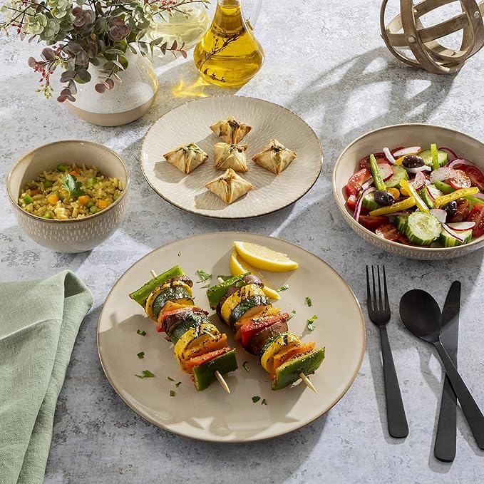 - ARTISINAL DESIGN: a soothing round shape with a perfect taupe tone will make you love this dinnerware on your table. The double bowl creates an added level of convenience for all desired meals. Whether you’re enjoying pasta or a soup, you will specifically fall in love with the versatile use of the dinner bowl.