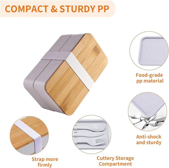 - LAYERDE AND LEAKPROOF DESIGN : The Layered design can effectively prevent food from mixing together, maintain the original taste of the food.The classic lunch bento box with compartment is designed to be leak-proof. So you don't have to worry about food leaking while you're carrying it.