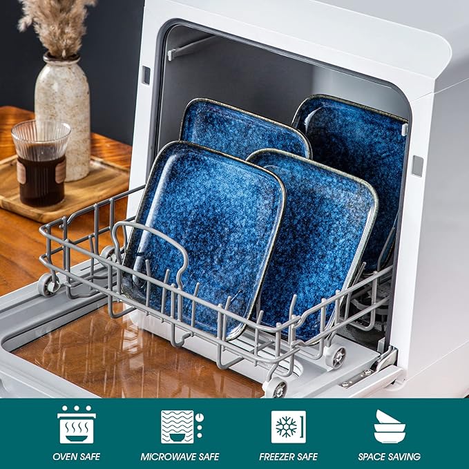 - 【Beautiful Modern Design】Enhance your dining experience with these square dinner plates with an elegant blue finish. The reactive glaze creates a colour gradient that adds a touch of style to your dishes, making your table glamorous