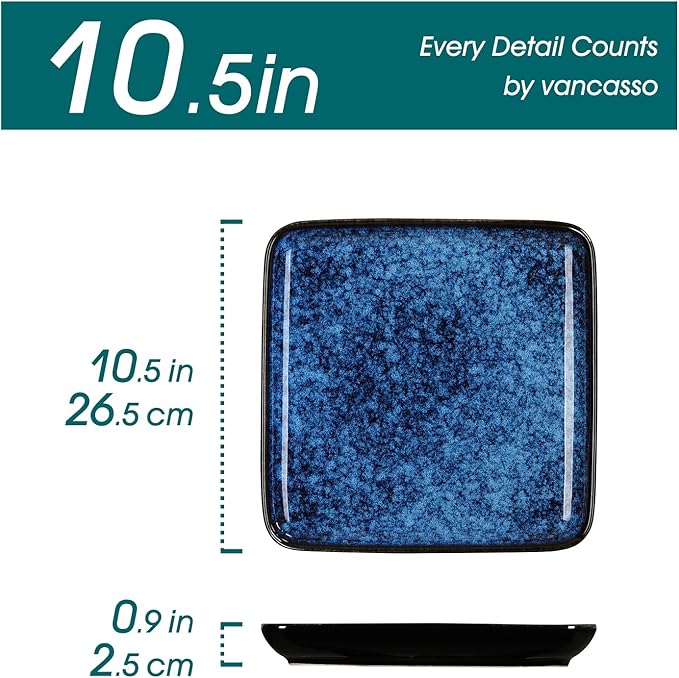vancasso Stern Square Dinner Plates Set of 4, 10.5 Inch Dessert Plates, Reactive Change Glaze Blue Serving Pasta Salad Plate Dish, Scratch Resistant