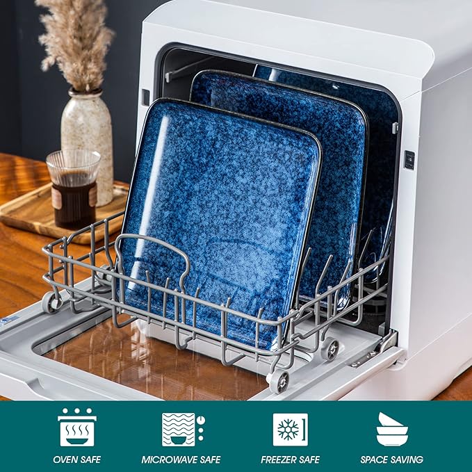 - 【Beautiful Modern Design】Enhance your dining experience with these square dinner plates with an elegant blue finish. The reactive glaze creates a colour gradient that adds a touch of style to your dishes, making your table glamorous