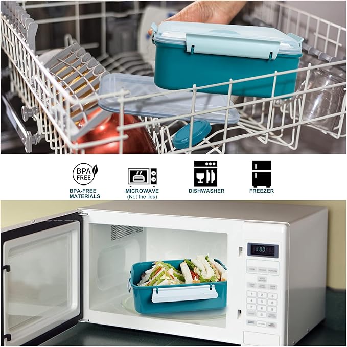 - Healthy and Safe Material: The bento lunch box is made of food-grade PP, non-toxic, Phthalate free, BPA free, great lunch boxes containers for adult and kids with large capacity 47oz, ideal meal prep containers for outdoor, camping, work, office and school use.