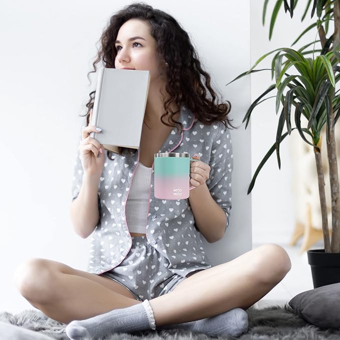 WETOWETO 14 oz Coffee Mug Set, Vacuum Insulated Camping Mug with Lid, Double Wall Stainless Steel Travel Tumbler, Coffee Cup Outdoor, Powder Coated Sweet Taffy