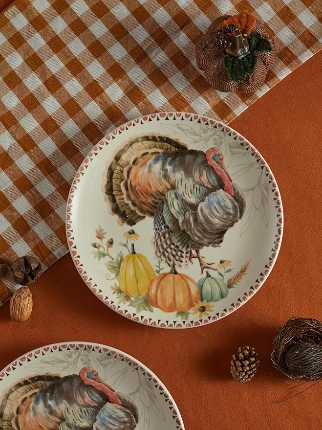 Bico Blessing Season Ceramic Salad Plates, 8.75 inch, Set of 4, for Salad, Appetizer, Microwave & Dishwasher Safe