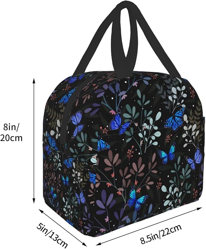 Butterfly Insulated Lunch Bag with Front Pocket,Reusable Cooler Tote with Zipper Use for Men & Women Camping/Hiking/Picnic/Beach/Travel