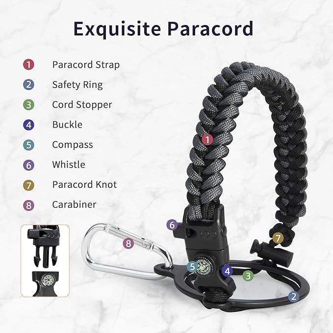 - Full-function Paracord Handle: Brilliant paracord of matching colors bring out the bottle with a touch of youthful vibe. Compact compass and handy carabiner make the bottle the ideal survival kit for expeditions in the wild.