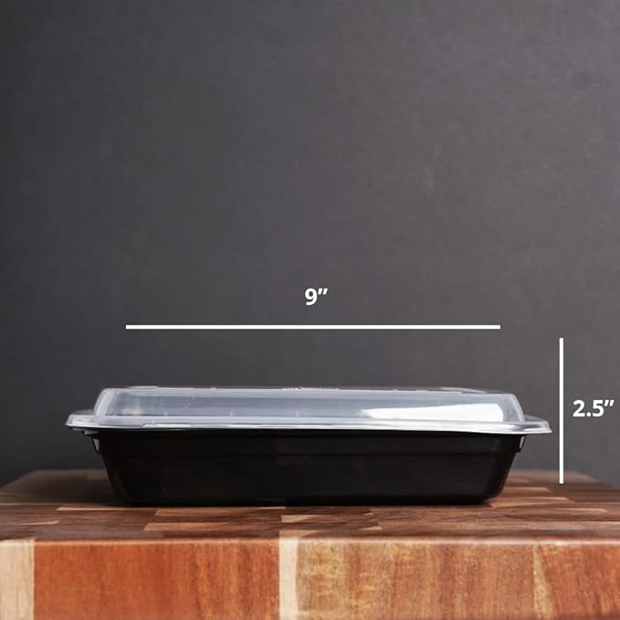 - MORE VERSATILE: We're changing the to-go container for the better! Start using a stackable, microwave safe, freezer safe, dishwasher safe food container that's strong enough to use and reuse. Each black container is made of recyclable plastic.