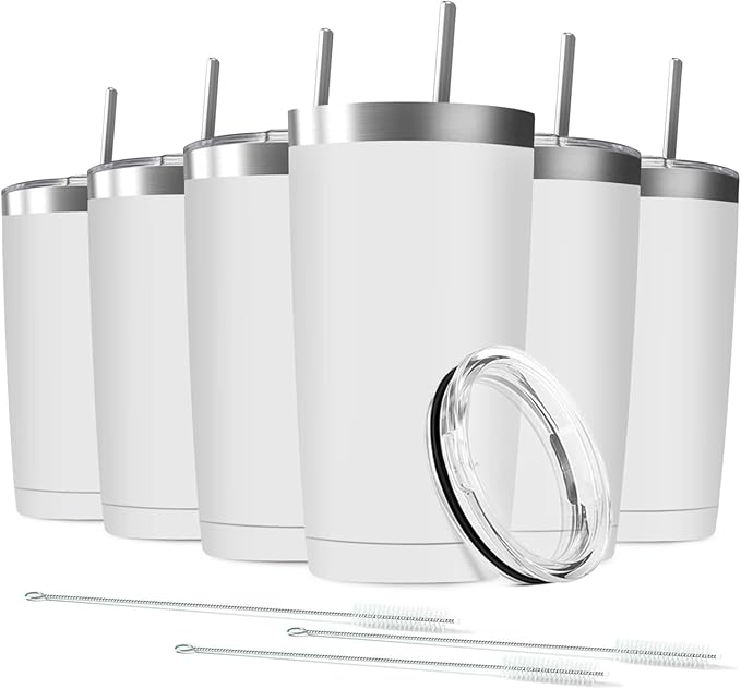 20oz Tumbler Vacuum Insulated Travel Mug with Lids, Stainless Steel Double Wall Bulk Cup for Home, Office, Outdoor Suitable for Vehicle Cup Holders(Set of 6, White)