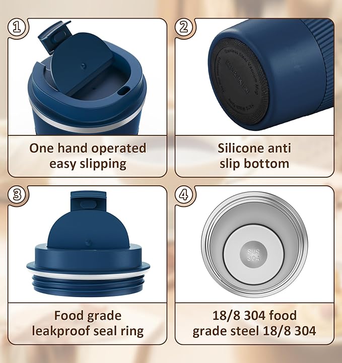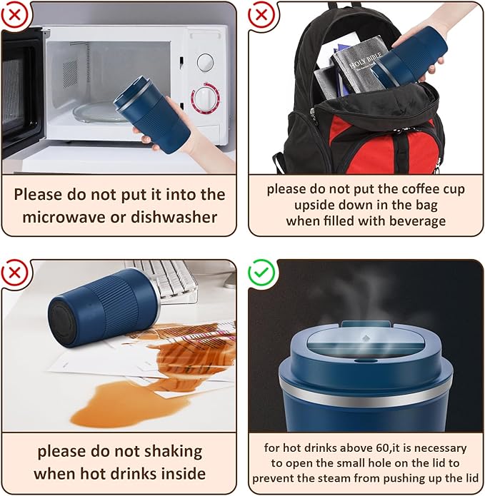 - 【 Dishwasher Not Recommended】 No seam on the inner wall of the coffee tumbler and 3.35 inches wide mouth of the travel mug make your wash job a breeze. only need to rotate and unscrew the cap, place the coffee travel mug under the running water to rinse.