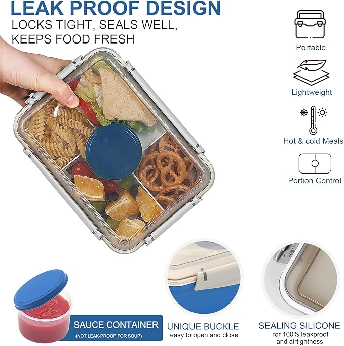 - ❤5 Pcs Sauce Container : Salad lunch bento box contains 5 pcs 3 OZ sauce container, convenient for carrying salad dressings, sauces and many other condiments. The lunch box also comes with a foldable fork, allowing you to enjoy food anytime, anywhere!