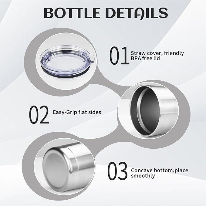 - BPA Free Lid: Stainless steel tumbler set with lid and an opening for drinking, be aware of how hot your coffee is before taking a sip. Under normal temperature, the insulated coffee cup keep your water hot for three hours and cold for nine hours