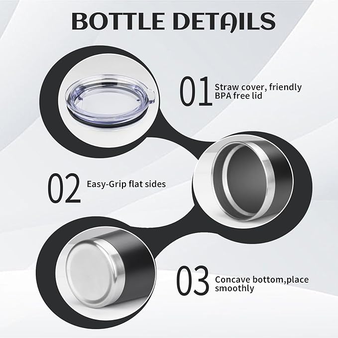 - BPA Free Lid: Stainless steel tumbler set with lid and an opening for drinking, be aware of how hot your coffee is before taking a sip. Under normal temperature, the insulated coffee cup keep your water hot for three hours and cold for nine hours