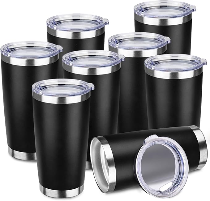 StarSpeed 20oz Tumbler Bulk with Lid, Stainless Steel Insulated Tumblers Double Wall Vacuum Insulated Travel Mug, Powder Coated Coffee Cups for Hot and Cold Drinks(Black,8)