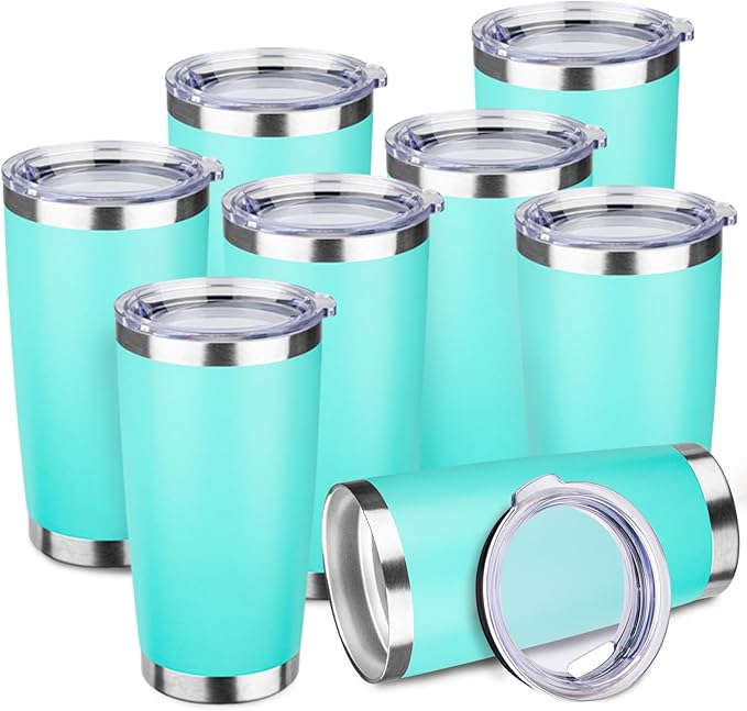 StarSpeed 20oz Tumbler Bulk with Lid, Stainless Steel Insulated Tumblers Double Wall Vacuum Insulated Travel Mug, Powder Coated Coffee Cups for Hot and Cold Drinks(Light Green,8)