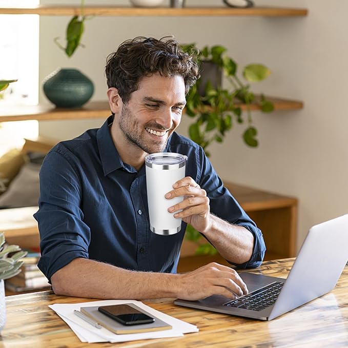 StarSpeed 20oz Tumbler Bulk with Lid, Stainless Steel Insulated Tumblers Double Wall Vacuum Insulated Travel Mug, Powder Coated Coffee Cups for Hot and Cold Drinks(White,1)