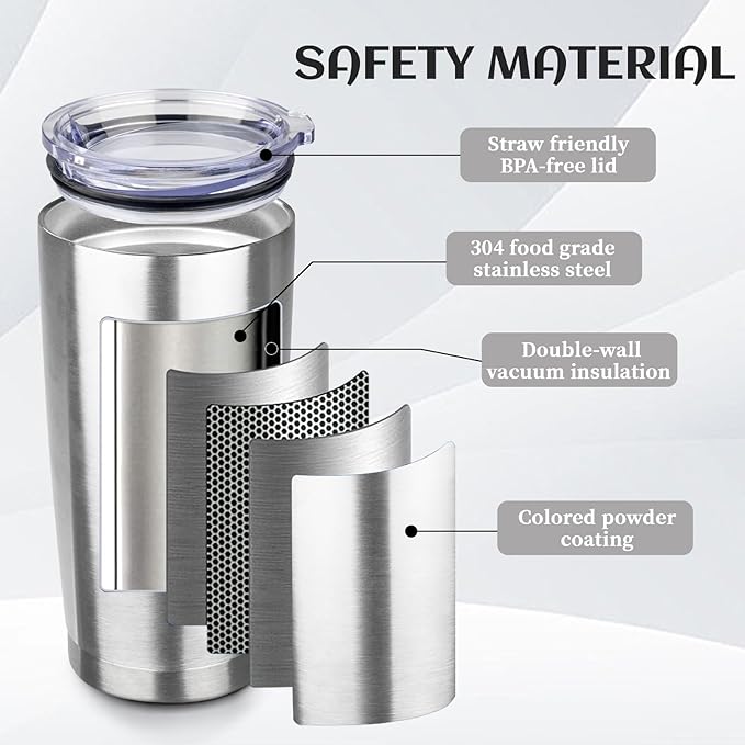 - Premium Material: 20oz Insulated tumblers are made of 304 food grade stainless steel with powder coating that won't fade, peel,and also provide additional grip to the exterior. Do not recommend washing in the dishwasher