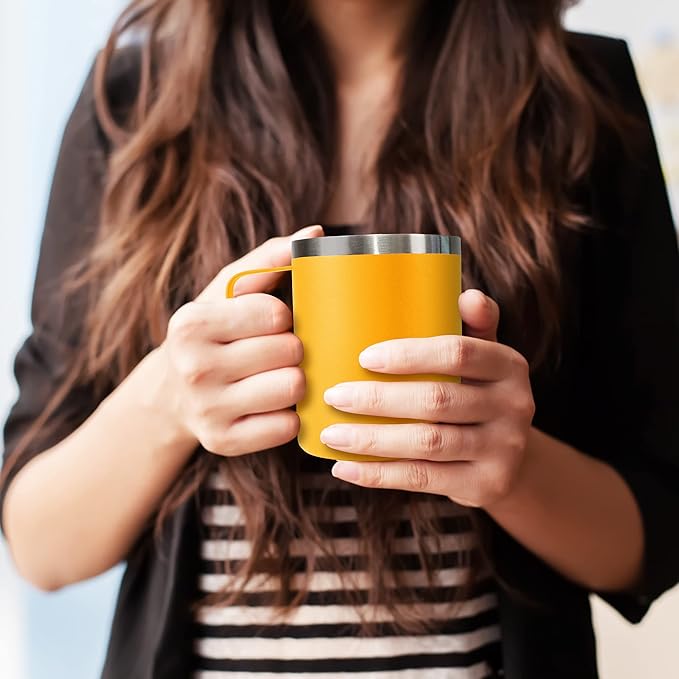 WETOWETO 14 oz Coffee Mug, Vacuum Insulated Camping Mug with Lid, Double Wall Stainless Steel Travel Tumbler Cup, Coffee Mugs Outdoor, Powder Coated Alpine Yellow