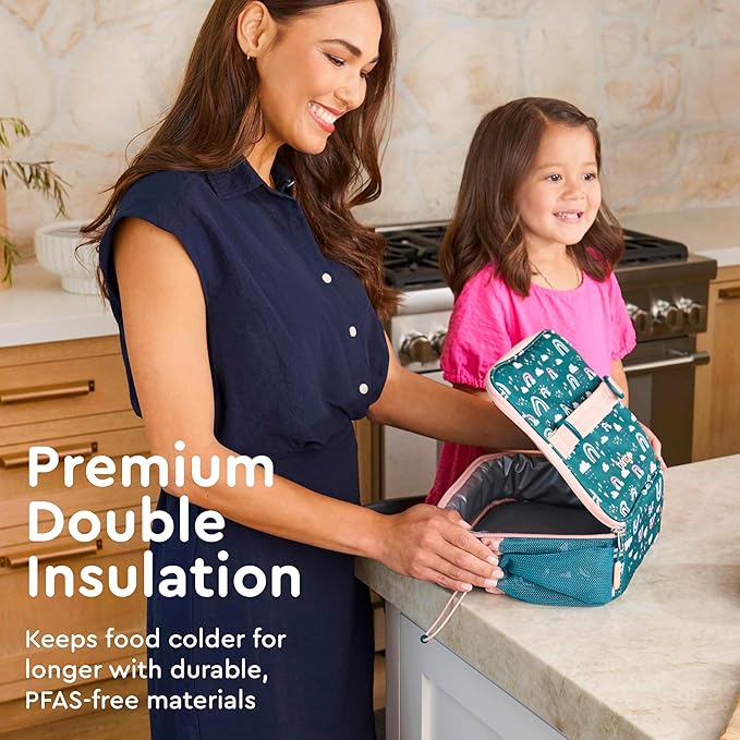 Bentgo Kids Lunch Bag - Durable, Double-Insulated Lunch Bag for Kids 3+; Holds Lunch Box, Water Bottle, & Snacks; Easy-Clean Water-Resistant Fabric & Multiple Zippered Pockets (Green Rainbow)