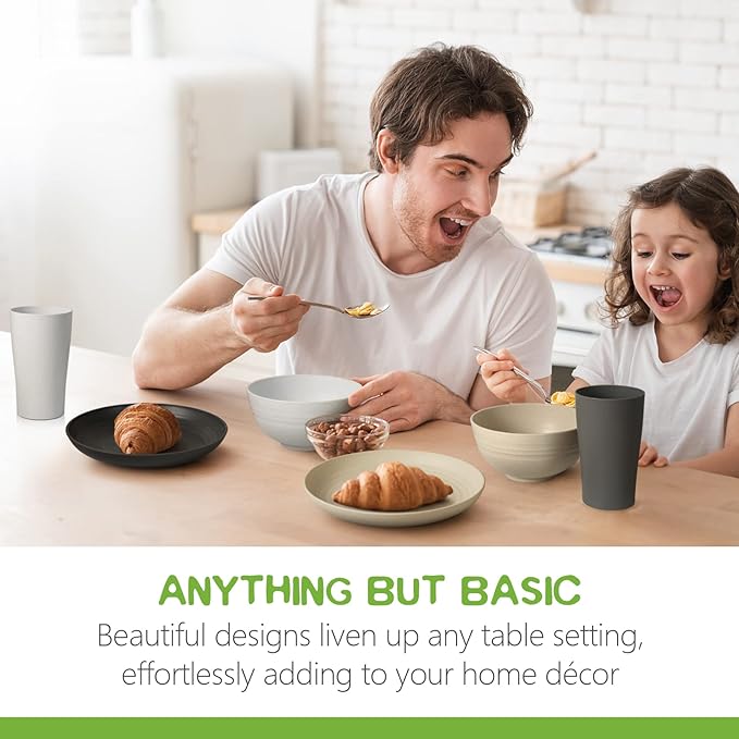 - PACKAGE INCLUDE: This wheat straw dinnerware sets include 32 pieces in total. Easy to match your existing flatware.