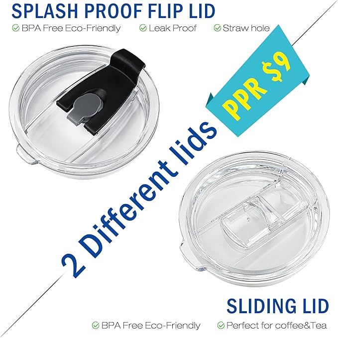 - The 14oz coffee mug with a handle fits most hands, making it easy to hold. It comes with two BPA-free lids – a sliding lid and a flip straw lid – allowing you to switch as needed