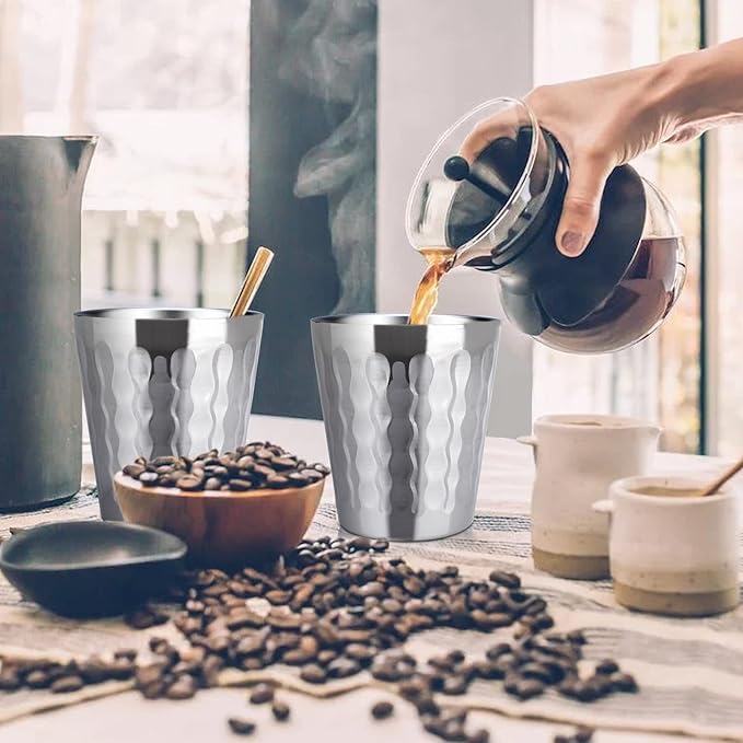 Beasea 10oz Stainless Steel Cups, 4 Pack Double Wall Metal Stackable Insulated Portable Drinking Tumblers Unbreakable Shatterproof Glasses for Home Restaurant Party Camping Travelling