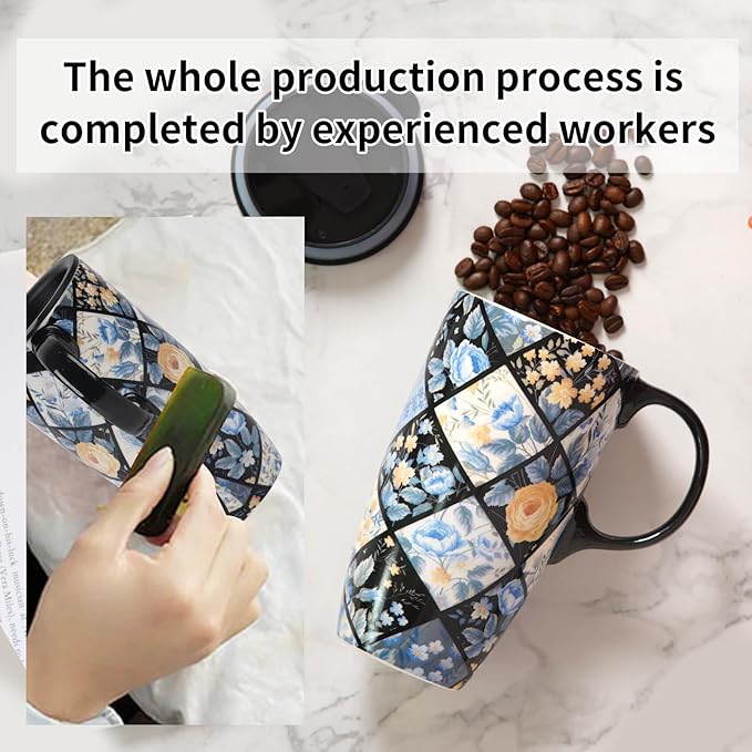 Topadorn Ceramic Mug Porcelain Latte Tea Cup Coffee Mug with Gift Box 17oz.Plaid Flower