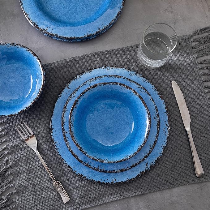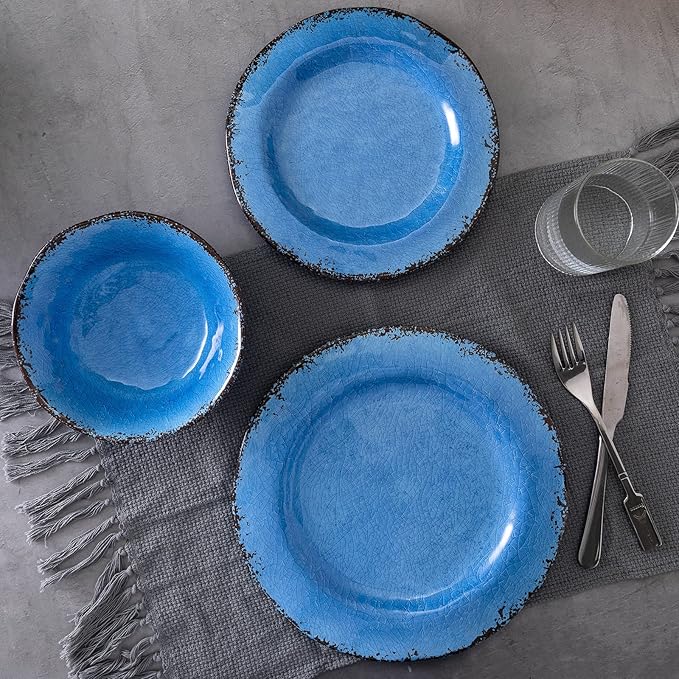 - PERFECT SIZE AND COLOR: The crackled melamine dinnerware set includes 4 each of the following item: 11"dia dinner plate, 9"dia salad plate, 7"dia x 2”h bowls, this blue makes home a luxurious, relaxed feeling.