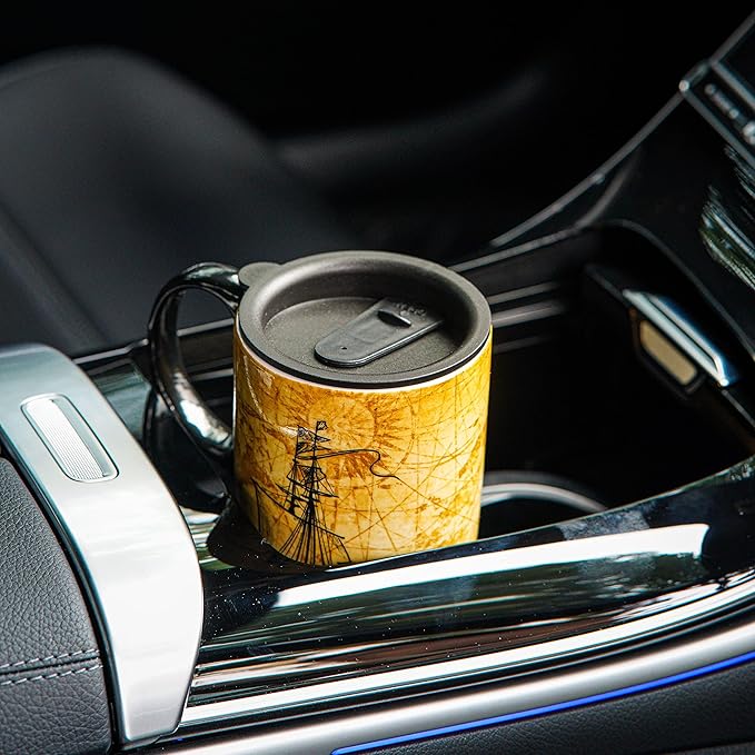 Topadorn Ceramic Mugs Porcelain Latte Tea Cup Coffee Mug with Lid and Gift Box,17oz.Sailing Ship