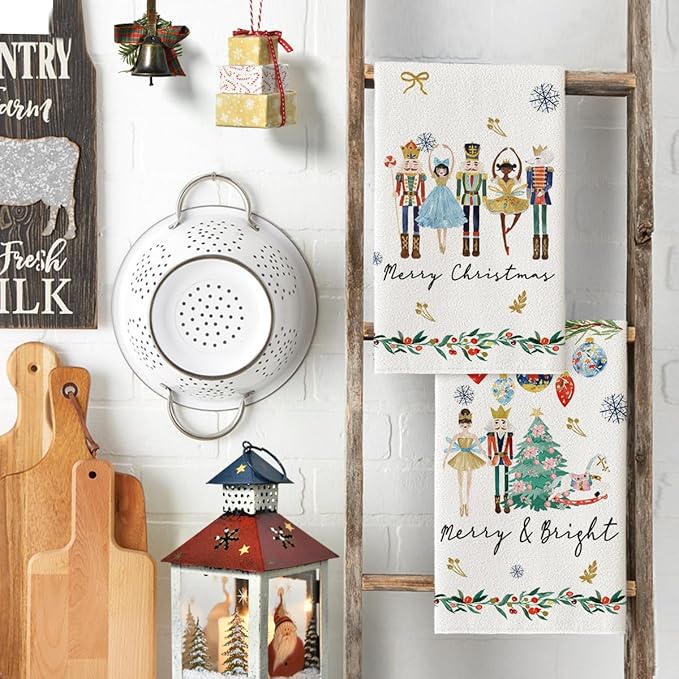 Artoid Mode Nutcrackers Xmas Balls and Trees Merry Christmas Kitchen Towels Dish Towels, 18x26 Inch Snowflakes Decoration Hand Towels Set of 2