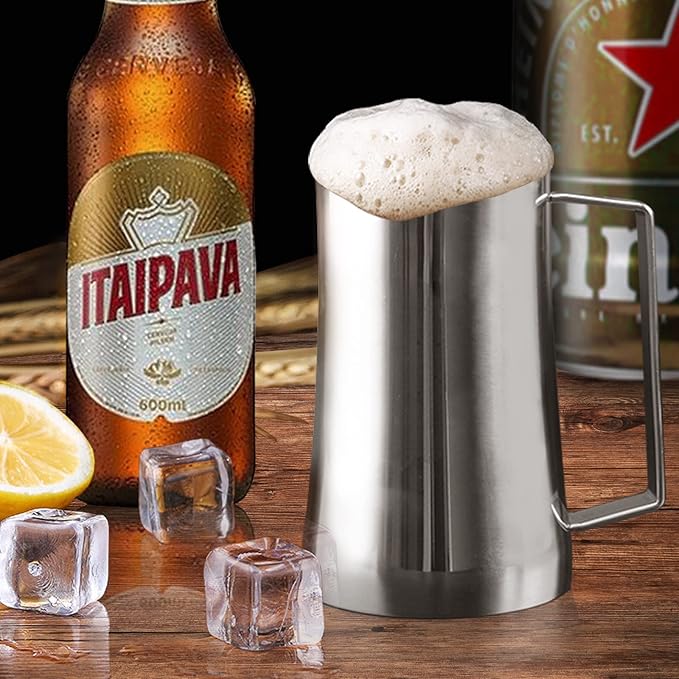 - Premium Features - The 14/20 Oz beer mug is made with double-wall vacuum insulation 304 stainless steel , which can keep drinks cool or hot. Let him enjoy his cold beer, protein shake or hot coffee, tea in a food-grade stainless steel cups.