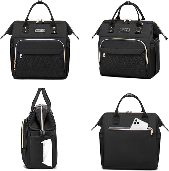 - Multi-Pocket Women's Lunch Bag - The lunch bag for women measures 10.5 x W 6.4 x H 11.8 inches and has a spacious main zippered pocket for storing women's lunchboxes, crackers, fruits, beverages and more. Two elasticized side pockets for cups, tissues or umbrellas. Two front zippered pockets and a privacy back pocket for cell phone and keys.