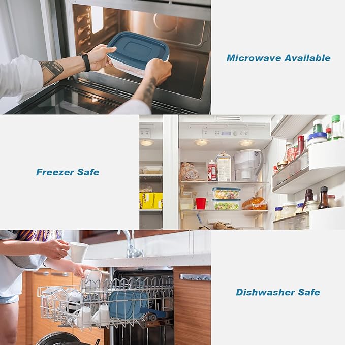- Microwave & Fridge Safe:Effortlessly reheat or cool your meals,as our containers are safe to use in the microwave and refrigerator. Easy Cleaning:Our food storage containers are dishwasher safe for quick and hassle-free cleaning.