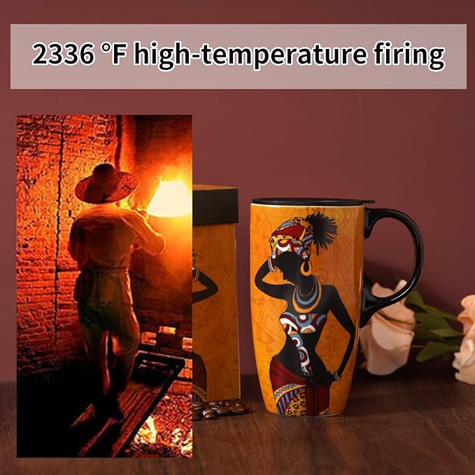 Topadorn Ceramic Mug Coffee Cup with Spill-Proof Lid Latte Mug for Home and Office with Gift Box,Girl
