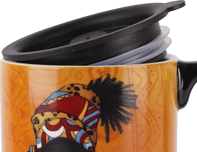 - Ceramic body with plastic, spill-proof lid with silicone ring for keeping drinks warm or cold