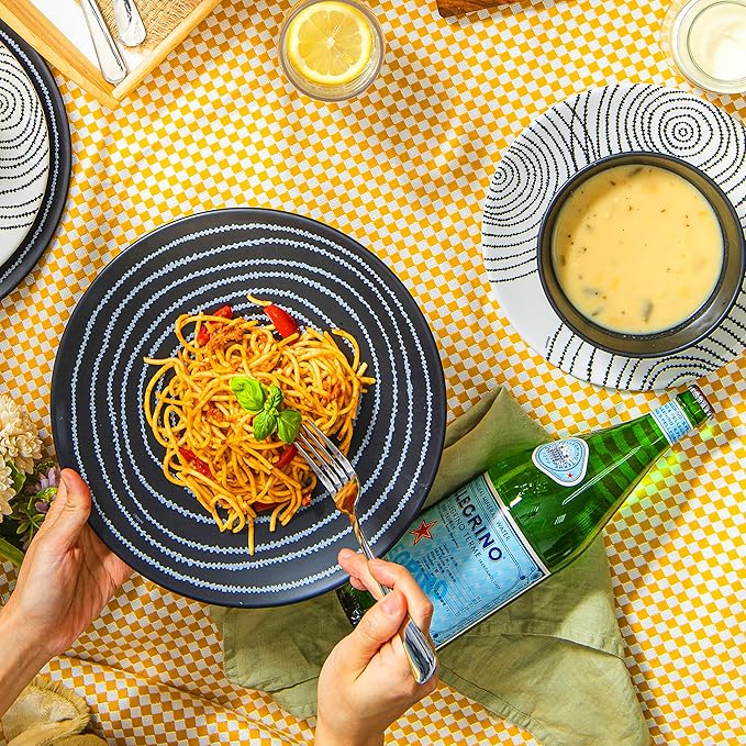 - SERVICE FOR FOUR: The 12 piece collection includes 4 dinner plates (11”), 4 salad plates (9”) , and 4 individual bowls (5.8”) that are great for both indoor and outdoor use.