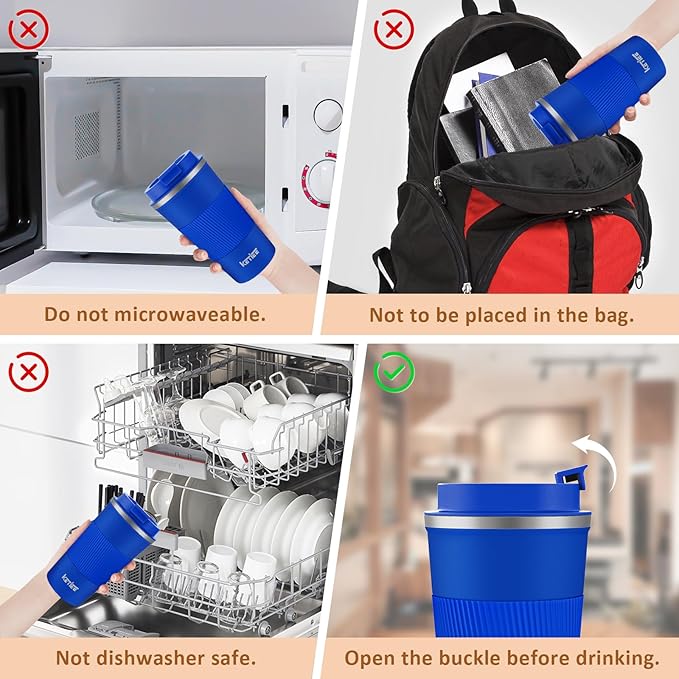 - 【 Dishwasher Not Recommended】 No seam on the inner wall of the coffee tumbler and 3.35 inches wide mouth of the travel mug make your wash job a breeze. only need to rotate and unscrew the cap, place the coffee travel mug under the running water to rinse.