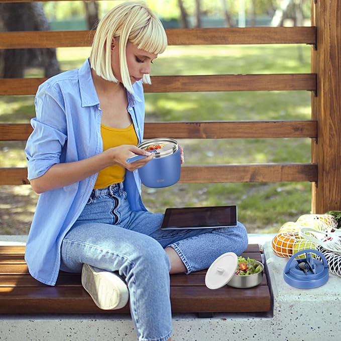 - The screw cap design with seal washer guarantees 100% leak-proof, the hidden handle and hidden folding spoon are designed for easy opening and carrying, and the bottom silicone pad prevents the food jar from moving or tumbling.