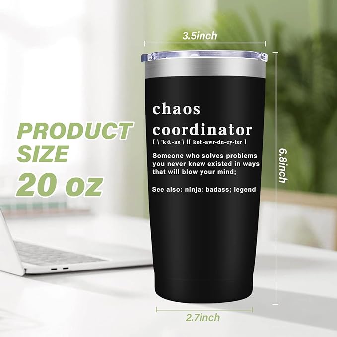 Chaos Coordinator Tumbler Cup,Christmas Gifts for Women,Unique Idea for Employee,Nurse,Boss Lady,Teacher,Office,Gifts for Women,Mom,Coworker,Birthday Gift,Thank You,20 oz Black Mug