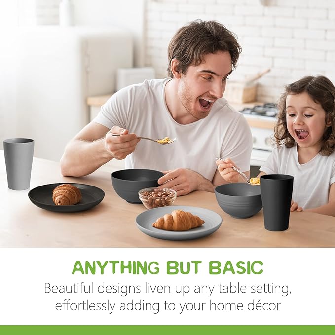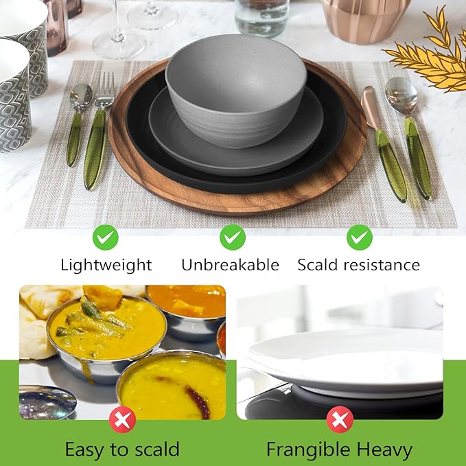 - PACKAGE INCLUDE: This wheat straw dinnerware sets include 32 pieces in total. Bright color bring you a fresh look and make it easy to match your existing flatware.
